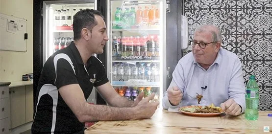Saaed had already started his business when he approached Thrive for additional support to further develop his ideas. Here, our NSW Thrive Manager, Gus, visits Saaed at his Dark Blue bakery.